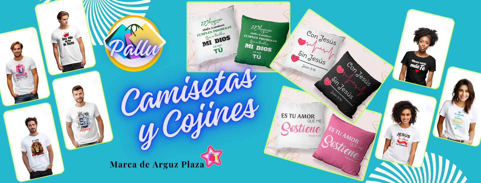 👕 Camisetas y Cojines con mensajes cristianos para Dama y Caballero